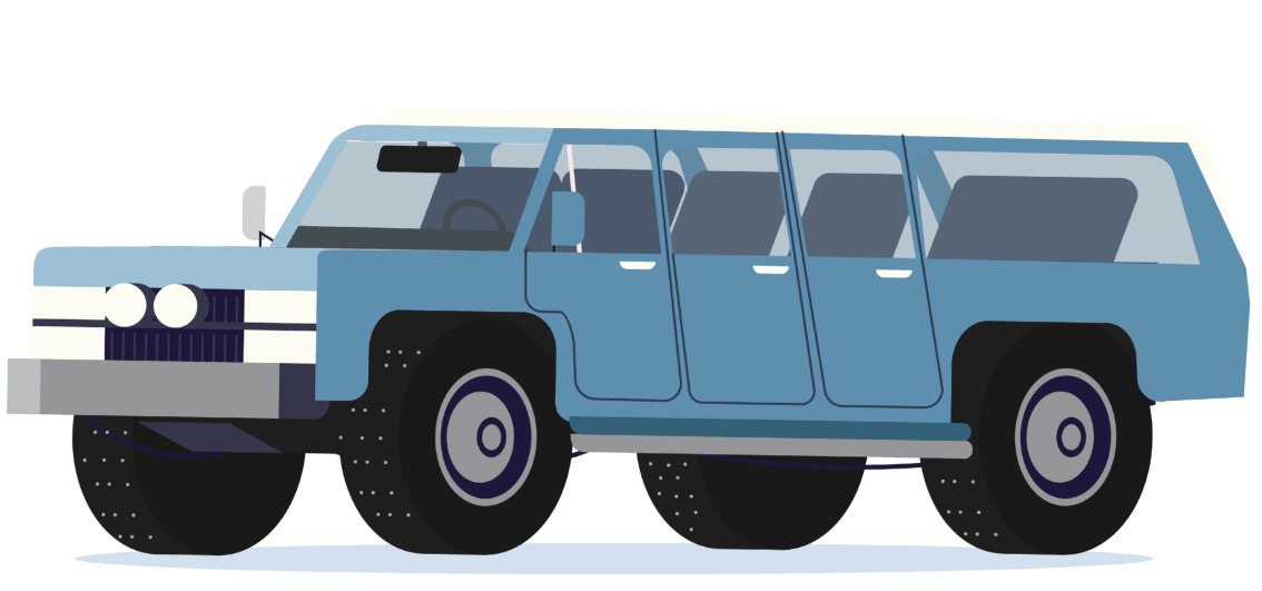 There are custom made ‘super jeeps’ with six doors, three on each side, that can fit eight people. Icelandic vehicle modification company Ísar is working on their own super jeep prototype designed to travel across glaciers and snow.30