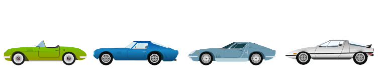Fast sports cars of the ‘70s, like the De Tomaso Pantera and BMW 1M, were typified by large, long, sleek bonnets and short rear trunks. Their windscreens were also angled acutely to reduce aerodynamic drag. However, increasing emissions controls had a knock-on effect on the average top speed of some of the fastest cars in this decade, particularly muscle cars, causing another downwards turn in our animation.