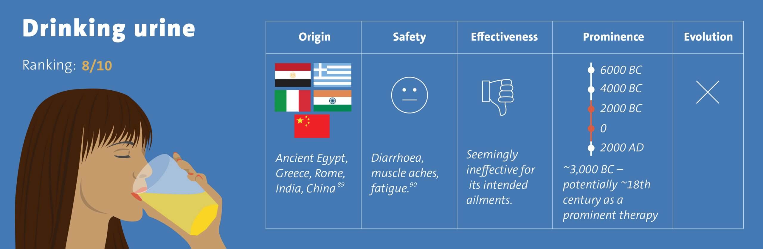 According to the Pan African Medical Journal, drinking urine (also known as urine therapy) has been practised for millennia around the globe.91