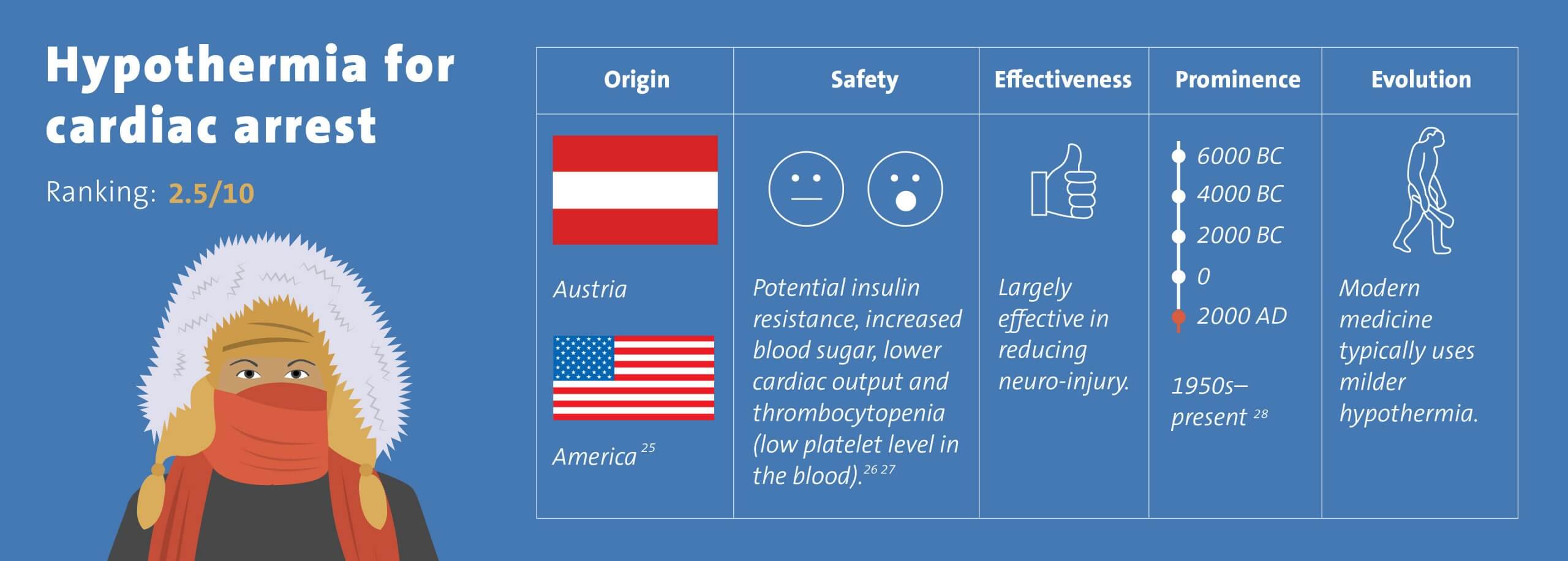 The first clinical trial of hypothermia for cardiac arrest sufferers appeared in 1958 – there was a 50% survival rate for patients that were treated with hypothermia compared to 14% who weren’t.34