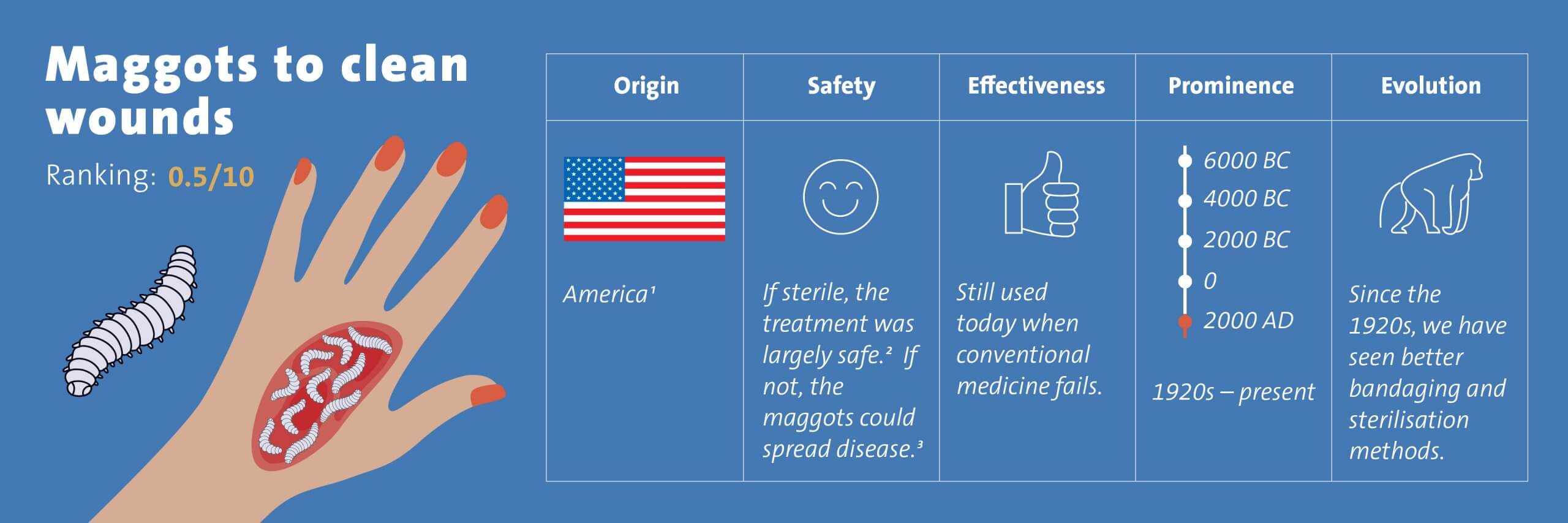 Over time, doctors have learnt to bandage these wounds in such a way that stops the maggots from migrating elsewhere (and to help absorb the excess liquid the creepy crawlies produce).7