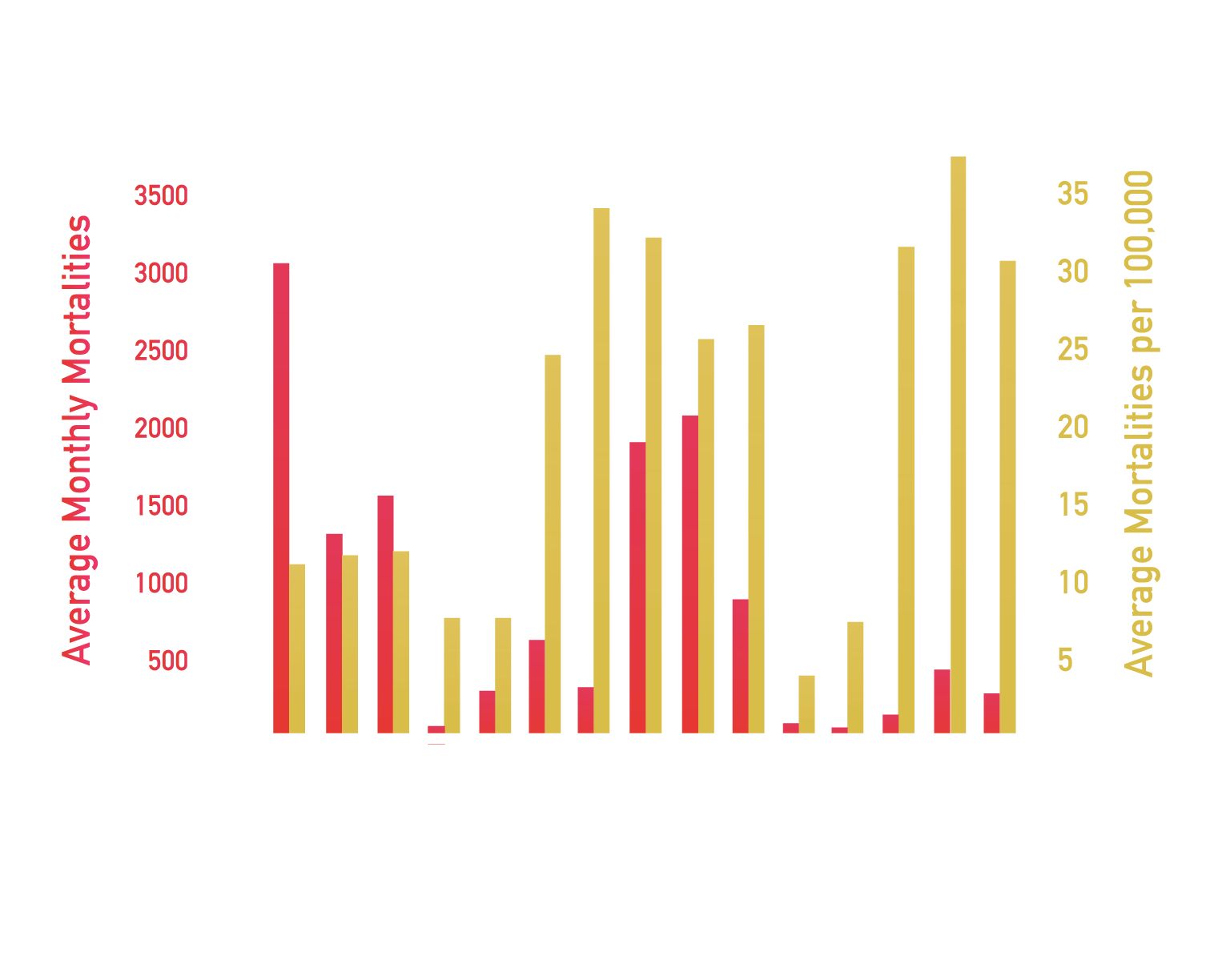 To gain a measure of comparison, we’ve recorded the number of road-related mortalities that occurred in a year for 15 different countries.