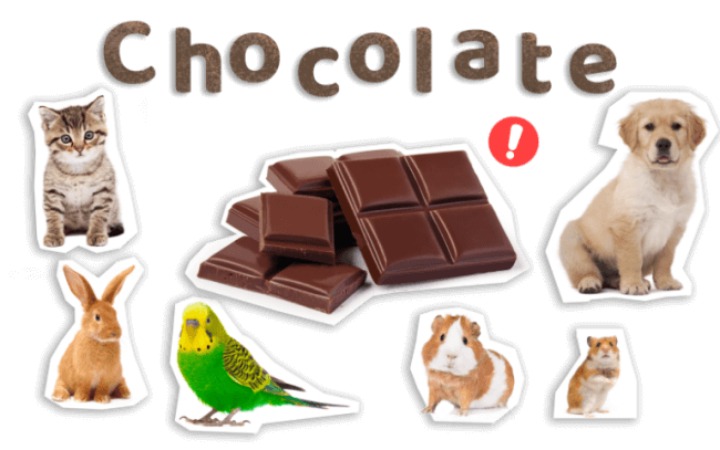We all love to treat and reward our pets from time to time, but chocolate can potentially harm or kill them. Cocoa contains a chemical called theobromine and can be toxic depending on how much your pet ingests, the size of your animal and the type of chocolate they’ve consumed.9 It can be poisonous for a range of pets including dogs, cats, hamsters, rabbits, guinea pigs, and birds. 10, 11, 12, 13