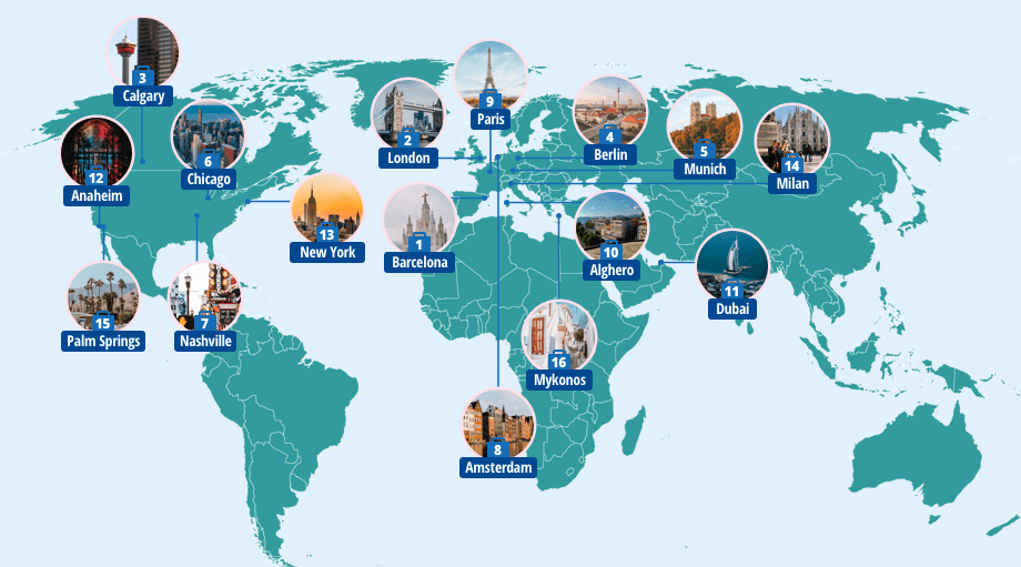 They might not have made the top 10, but Dubai, Anaheim, New York, Milan, Palm Springs, and Mykonos have also made the global list for city breaks and should certainly be up for discussion for your next trip.